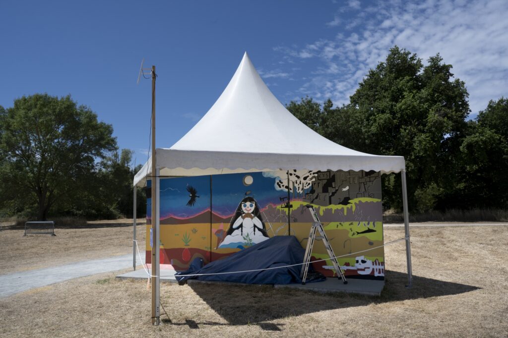 Mon héroïne, « Niña », s’est imposée à moi. Transportée dans l’immensité du désert, les yeux bleuis par « l’Épice », elle est capable d’ingérer tous les maux d’un monde qui touche à sa fin et de les expirer sous forme de nuages purifiés ramenant la Vie originelle.
