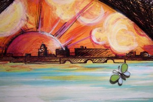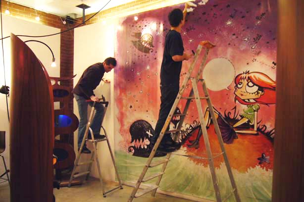 Celle-ci comportait plusieurs tableaux scanées puis imprimés en numérique en grands formats sur bâches ainsi qu’une fresque murale phosphorescente.